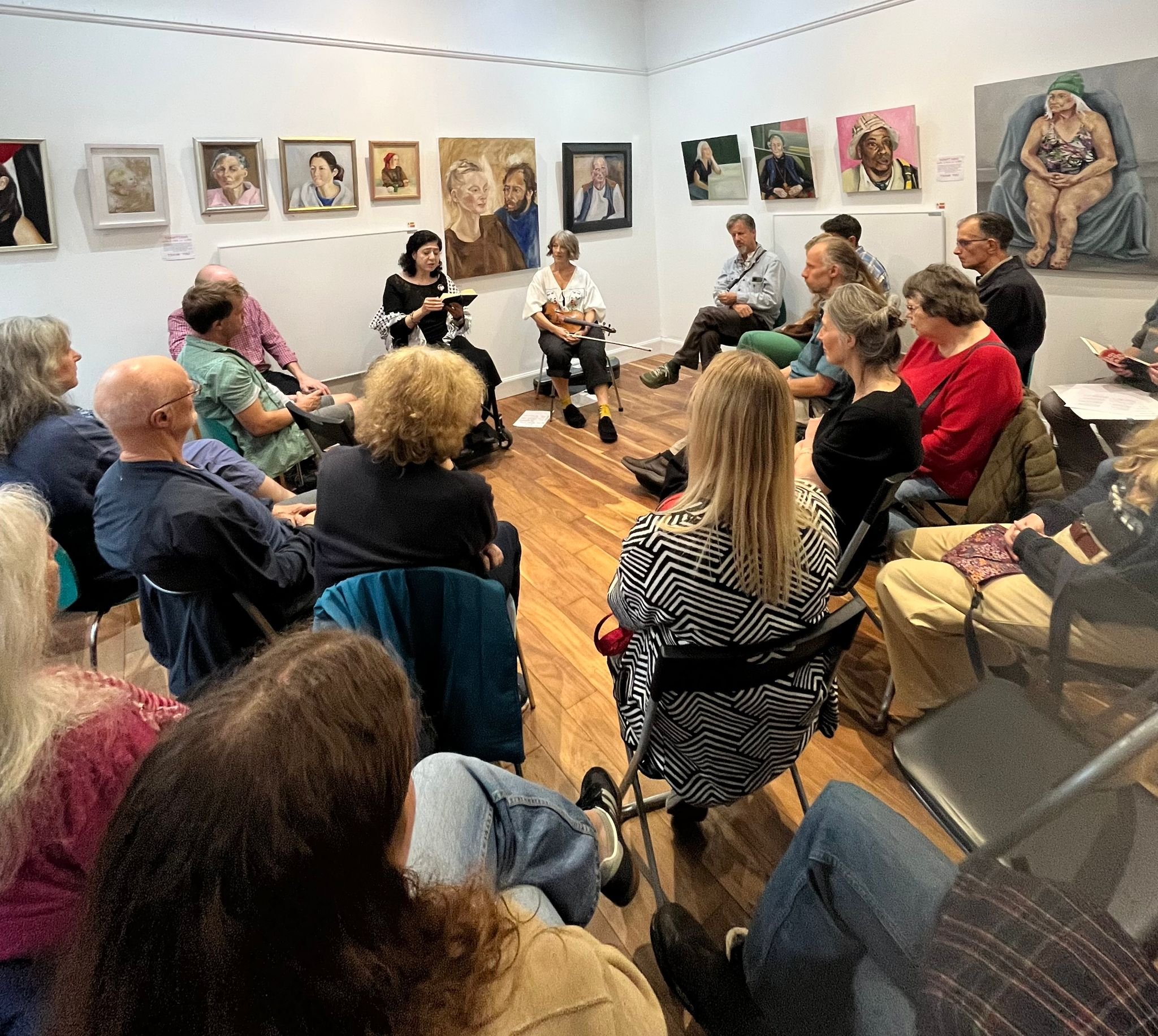This exhibition raised £1100 for MAP medical aid for Palestinians. With poetry by Scottish Palestinian poet Nada Shawa and music by violin player Gica Leoning who is Jewish and Phoebe’s paintings of local poeple the exhibition made a stand for Palestinian freedom. You can read more about the exhibition in The Scottish Leftist Review: Issue 147 A New Left Party Sept – Oct 2025 THE GIFT